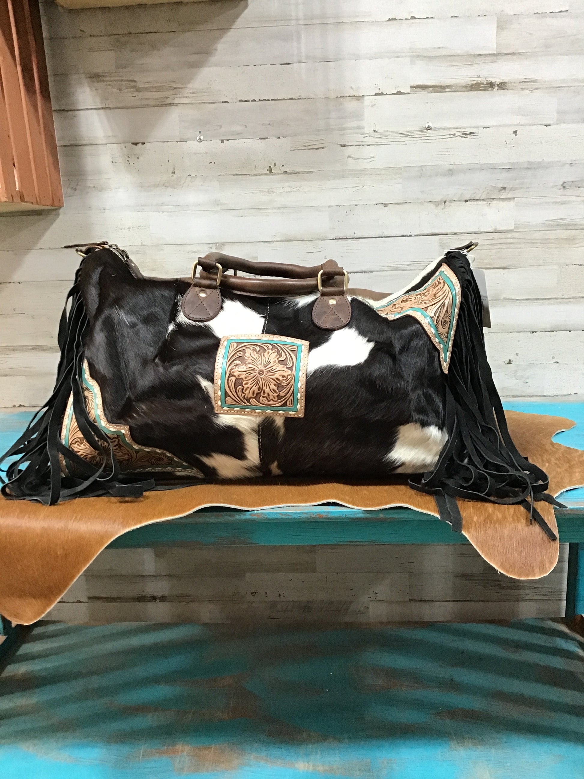 Cowhide/ Leather Fringe Weekender